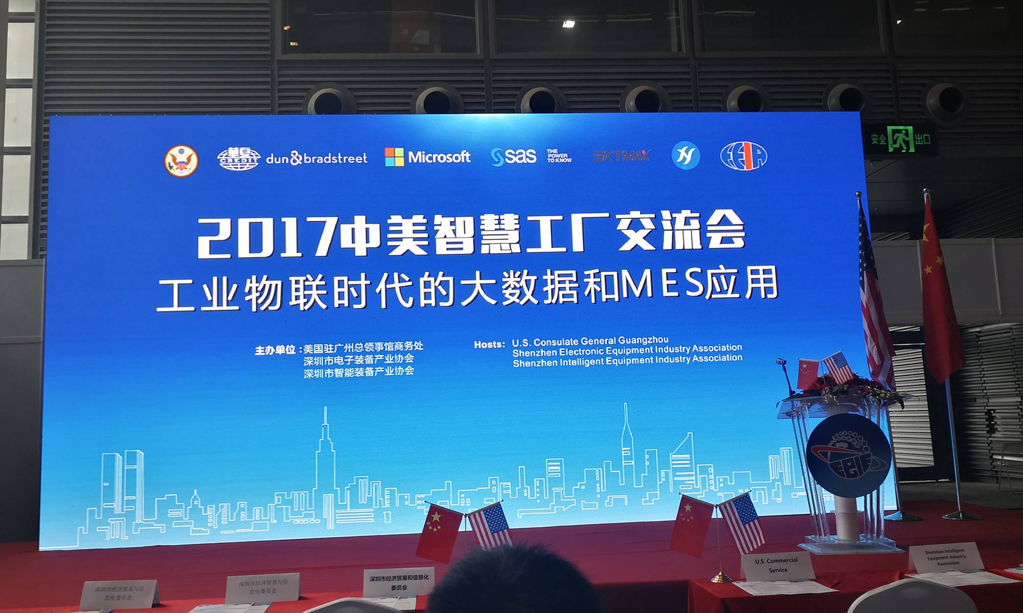 ? ? ?深科特同期還受邀參與由美國駐廣州總領事館、深圳市電子裝備產業協會、深圳市智能裝備產業協會主辦的中美智慧工廠交流會,由事業部總監何云德分享以“移動終端如何掌控智能工廠”為主題的精彩內容。